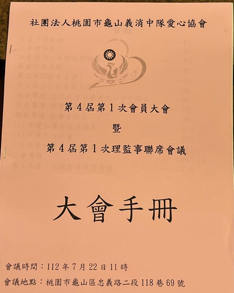 時間:112.07.22地點:龜山區忠義路2段118巷69號(稻香村餐廳)📍 第四屆第一次會員大會📍 第四屆第一次理監事聯席會議📍投票選舉第四屆理事長、理事、監事、常務理事、常務監事📍餐敘📍 第四屆👇👇👉理事長:余萬益👉常務監事:邱奕洋👉常務理事:吳誌明、詹廣森、黃國祥、王文順👉理事:姚宗德、黃明山、李德村、廖本村、魏永春、呂傳立、李志忠、林洸葵、吳連春、黃偉群👉監事:王詳登、康永明、陳耿祥、游櫂煌 文章導覽 第三屆第6次理監事聯席會議 第四屆第二次理監事聯席會議